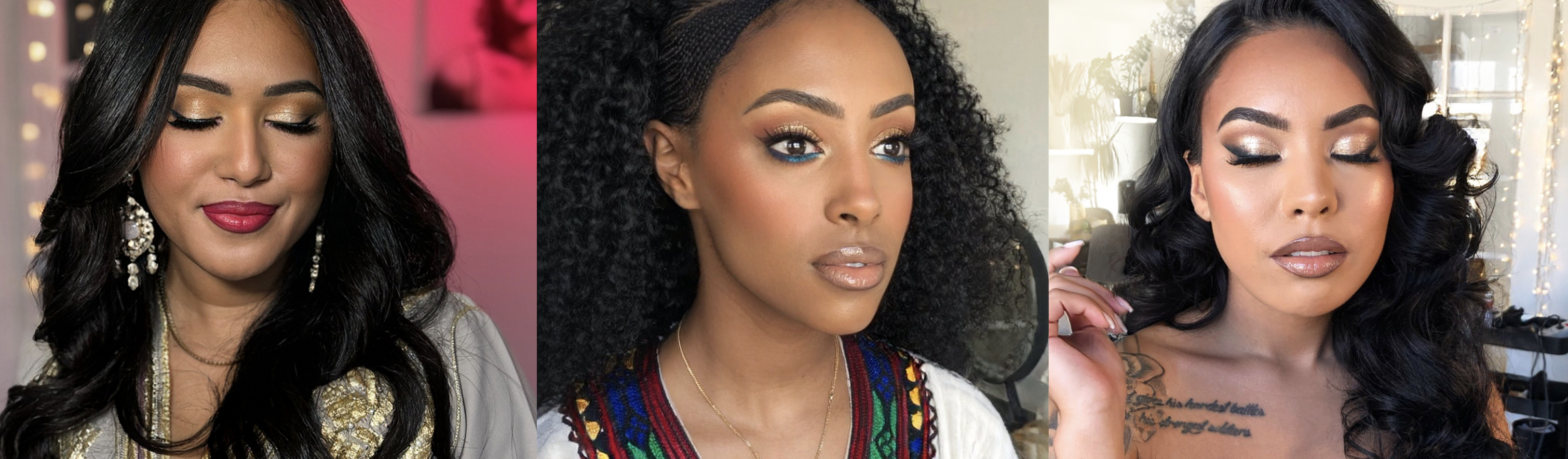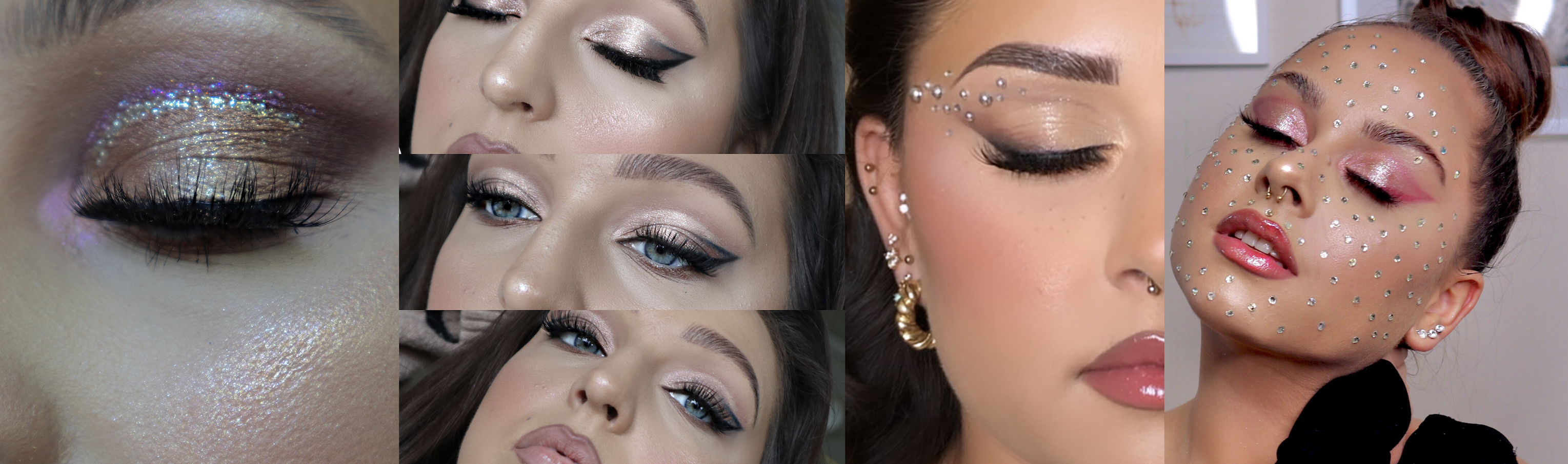 Volledige dekking, eyes popping/smokey, glitter, contour